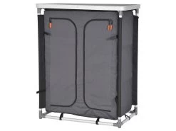 De afneembare tafelpoten zijn op te bergen onder het tafelblad, vervolgens is de tafel tot een compact pakket dubbel te klappen. Dankzij het handvat kun je de tafel makkelijk meenemen. Het zwarte frame is gemaakt van aluminium met daarop een MDF tafelblad. De tafel is dus niet bestand tegen water en hitte!
