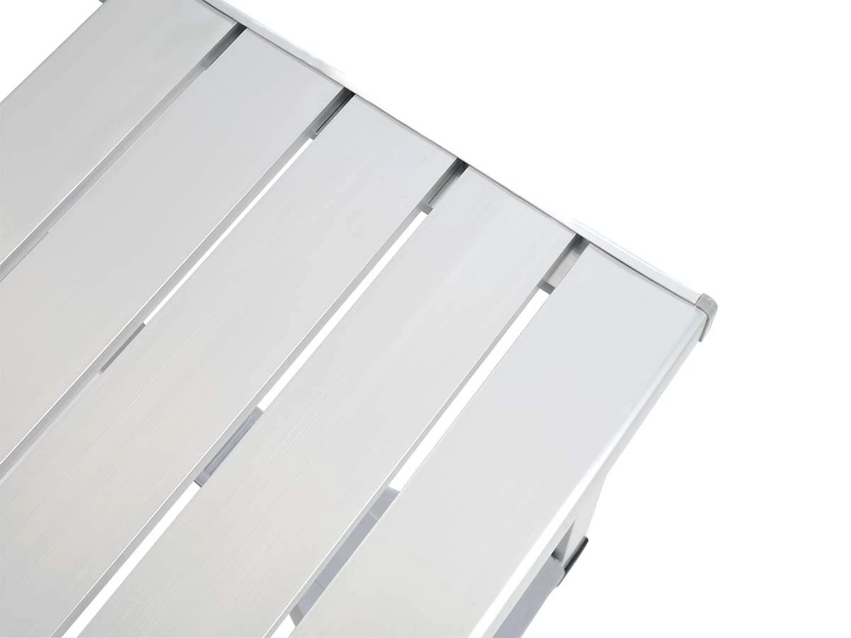 Zowel het frame, de zitting en het tafelblad zijn gemaakt van lichtgewicht aluminium, hierdoor is de picknicktafel waterproof en hittebestendig. Het zitgedeelte is 41 cm hoog en het tafelblad beschikt over een parasolgat.