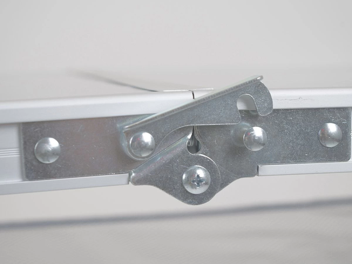 De tafel biedt ruimte voor 6 personen en heeft een afmeting van 150 x 80 cm. De tafel is in 3 hoogtes te verstellen (55 cm, 65, cm en 70 cm) en is voorzien van 4 handige stelvoetjes, zodat je de tafel overal waterpas neer kunt zetten. Het tafelblad is water- en hittebestendig, hierdoor kun je er dus ook je kooktoestel op gebruiken of de tafel buiten in de regen laten staan.