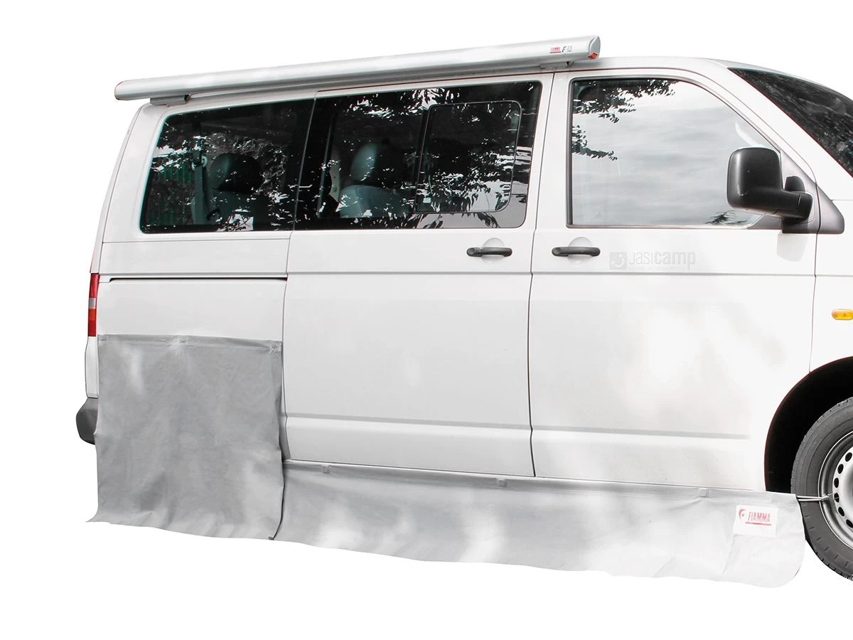 De Fiamma Skirting voor de Volkswagen T5 en T6 bestaat uit een tochtstrook met wielflap. De tochtstrook biedt bescherming tegen wind en tocht die onder het voertuig vandaan komt.