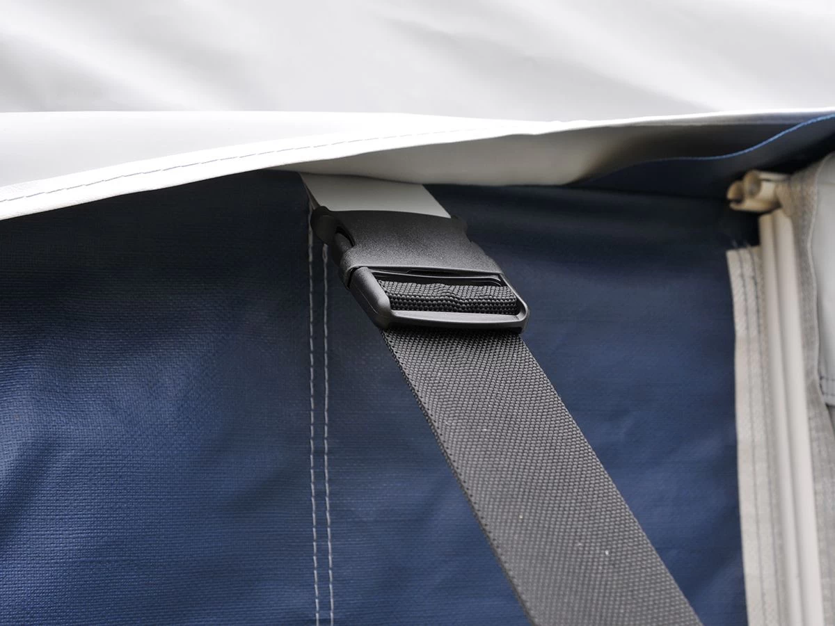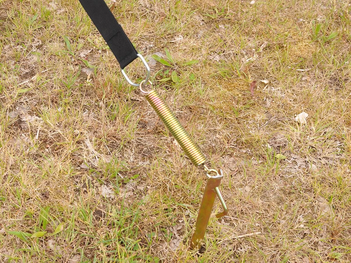 Je bevestigt de stormband gemakkelijk met behulp van de gespen en de meegeleverde haringen en stormbandveren. De haringen zijn van een stevige en zware kwaliteit zodat je je voortent goed kunt verankeren. De spanbanden hebben tevens een spanmogelijkheid zodat je na het bevestigen de stormband nog eens goed kunt aanspannen.