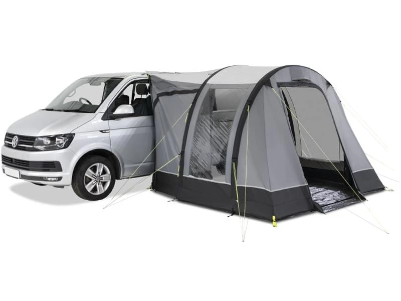 Wanneer je aan het rondtrekken bent met je kampeerbus heb je geen zin een voortent die moeilijk op te zetten is. De Trip Air van Kampa biedt dan uitkomst. Deze compacte en lichtgewicht bustent is voorzien van opblaasbare luchtslangen en is daardoor razendsnel op te zetten. De Trip Air is voorzien van een inhaakbaar grondzeil met opstaande rand, zo kan regenwater niet zomaar naar binnen lopen. De opstaande rand kan bij de deur naar beneden geklapt worden zodat je er niet over kunt struikelen. Voor extra ventilatie is de deur voorzien van een extra hordeur. Zo kun je de tent lekker doorluchten zonder last te hebben van ongedierte.