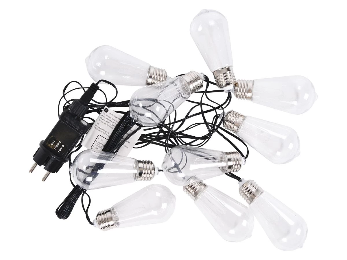De 10 lampjes zitten verdeeld over een kabellengte van 5 meter met daaraan een voedingskabel van 3 meter. Zo heb je lengte genoeg om de lampjes mooi op te hangen. Deze lichtslinger is voorzien van een timer waarmee de lampjes na 6 of 18 uur vanzelf uit gaan.