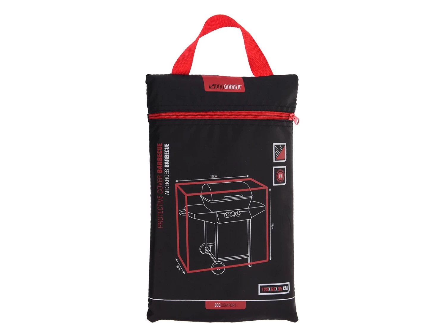 De rechthoekige grote BBQ afdekhoes wordt geleverd in een handige opbergtas.
