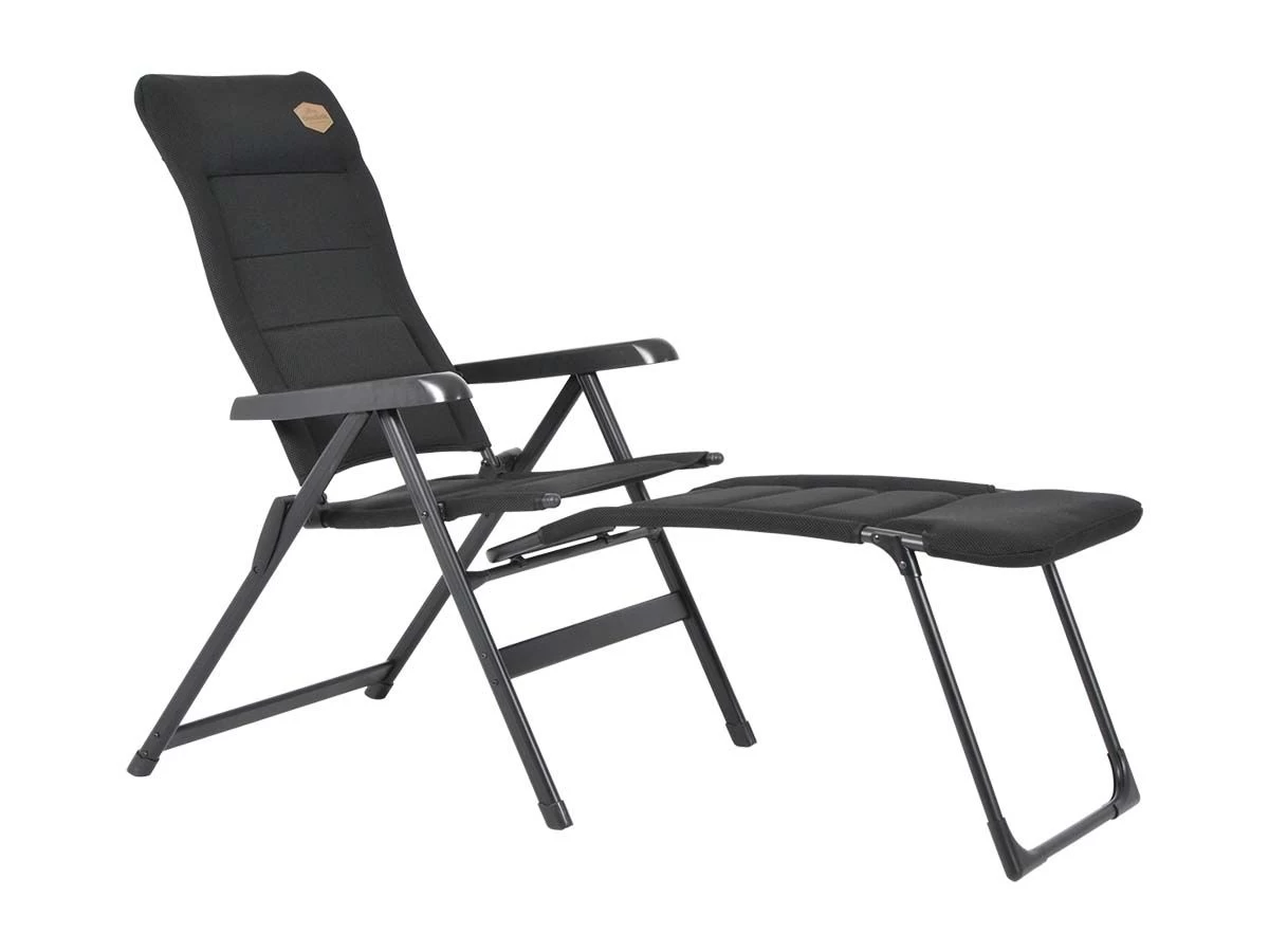 Het frame is gemaakt van aluminium en de stof is van 3D gepolsterd polyester dat zorgt voor maximaal comfort. De voetenbank is na gebruik plat in te klappen zodat hij eenvoudig vervoerd en bewaard kan worden.