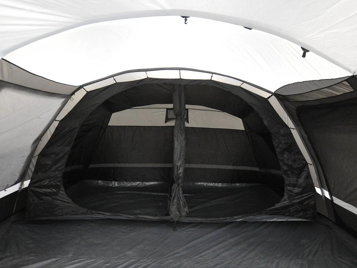 Deze moderne tunneltent is geschikt voor maximaal 6 personen en heeft tentstokken die voorzien zijn van een lichte knik waardoor veel stahoogte ontstaat. Ontbijten of een boek lezen doe je onder de royale luifel met zijwanden die voorzien is van twee grote ramen zodat je altijd een oogje in het zeil kunt houden en weet wat er op de rest van het veldje gebeurt.