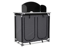 De Florence is voorzien van een windscherm die ervoor zorgt dat je kooktoestel niet uitwaait door te veel wind. Het windscherm is te gebruiken bij een kooktoestel met een maximale afmeting van 60 x 40 cm. Het windscherm kan ook verwijderd worden van het bovenblad zodat je de campingkeuken ook als gewone campingkast kunt gebruiken. Deze campingkeuken kan opgeborgen worden in de meegeleverde draagtas