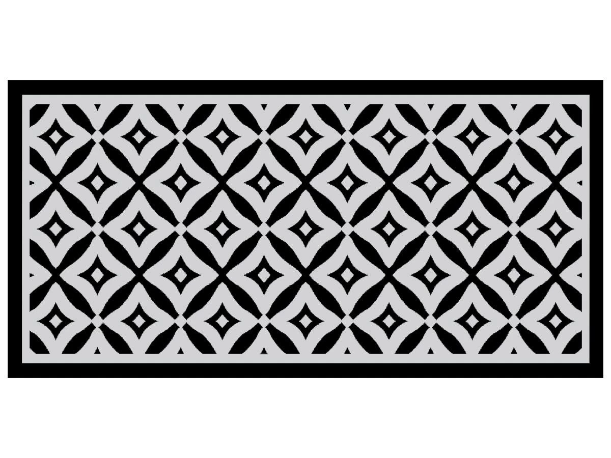 Deze slijtvaste mat is voorzien van een modern dessin en is vuil-, rot- en uv-bestendig en is bovendien eenvoudig te reinigen. De mat is gemaakt van geweven polypropyleen met rondom een polyester rand. De dichte weefstructuur houdt ongedierte van onderaf tegen.