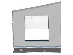 Voor deze zijwand heb je een optionele rafter (of spanstang) nodig, dit is de stang waaraan je de zijwand kan ophangen. Klik eerst de rafter in je luifel, daarna kan je de zijwand er eenvoudig omheen ritsen.