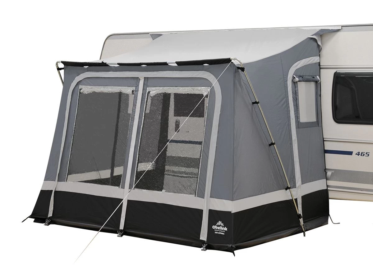 De Obelink San Antonia is voorzien van twee grote ramen in de voorwand. Deze ramen kun je naar wens van binnenuit openen of sluiten met een gordijn. Je kunt de voortent bovendien gemakkelijk omtoveren tot een luifel met zijwanden door de gehele voorwand er uit te ritsen.