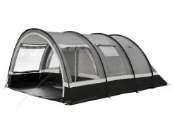 De achterzijde van de luifel is voorzien van een lange aansluitflap die je met de meegeleverde scheerlijnen over bijna elke tent heen kunt spannen. Omdat de zijwanden in de breedte variabel vast zetten zijn kan de luifel op zowel smalle als brede kampeertenten bevestigd worden.
