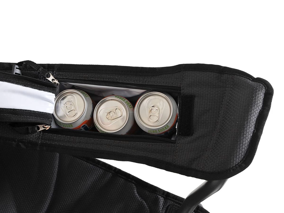 In de armleuning zit een klein koelvakje en een bekerhouder verwerkt. Ideaal, zo kun je in de bekerhouder je drankje kwijt en je volgende drankje kun je alvast bewaren in het koelvakje.