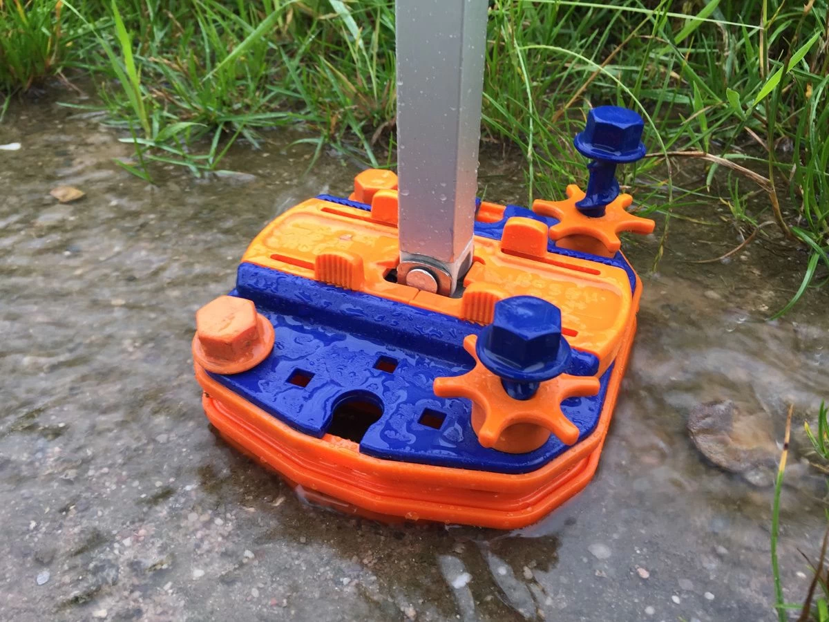 Soms is het niet mogelijk om haringen volledig de grond in te draaien. Heb je de Ankerplaat 2.0 al, dan vormen de Peg & Stop-haringen de oplossing. Draai de blauwe haringen de grond in totdat je niet verder kan. Draai daarna de oranje moer een paar keer naar rechts en je Ankerplaat kan geen kant meer op!
