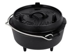 De pan is zeer geschikt om maaltijden te bereiden boven open vuur of op hete kolen. Het massieve gietijzer verdeelt de warmte zodat de pan zonder problemen kan worden gebruikt om te bakken, braden, frituren, koken of stoven. De pan is voorzien van een pre-seasoned coating tegen aanbakken en roesten. Aan de onderkant van de pan zitten 3 kleine pootjes zodat de pan stabiel in het vuur kan worden geplaatst. De deksel van de pan kan ook worden gebruikt als koekenpan, hapjespan of schaal. Hij is ook voorzien van een kleine opening voor gebruik van een thermometer en een hengsel om de pan te dragen of hem boven het vuur te hangen.