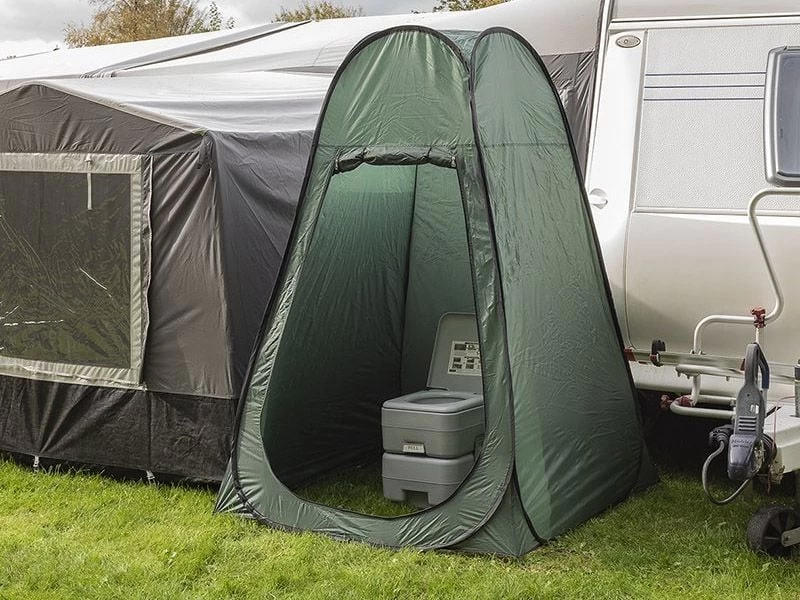 Wanneer je op de camping aangewezen bent op je privé sanitair dan wil je natuurlijk niet op de kijk zitten. Een toilettent biedt dan uitkomst. Met deze snel op te zetten toilettent heb je binnen een handomdraai je eigen beschutte privé toilet gecreëerd.