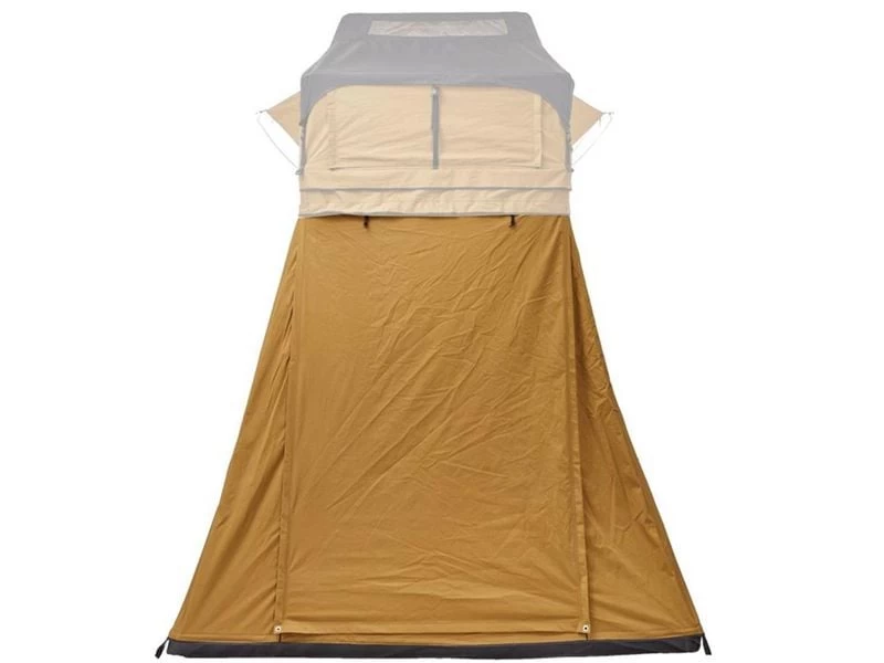 De Big Willow 160 voortent kan d.m.v. een ritssluiting eenvoudig en snel aan de Big Willow 160 daktent bevestigd worden. Hiermee creëer je binnen een handomdraai een volledig beschut voorportaal en een extra opbergplek voor bagage. Dankzij de dubbele rits kan voortent op een hoogte van 200 of 220 cm aan de daktent bevestigd worden. De voortent is voorzien van een vast kuipgrondzeil zodat regenwater en ongedierte buiten de tent blijven. De voortent is rondom voorzien van grote deuren met horrengaas voor optimale ventilatie én gebruiksgemak.