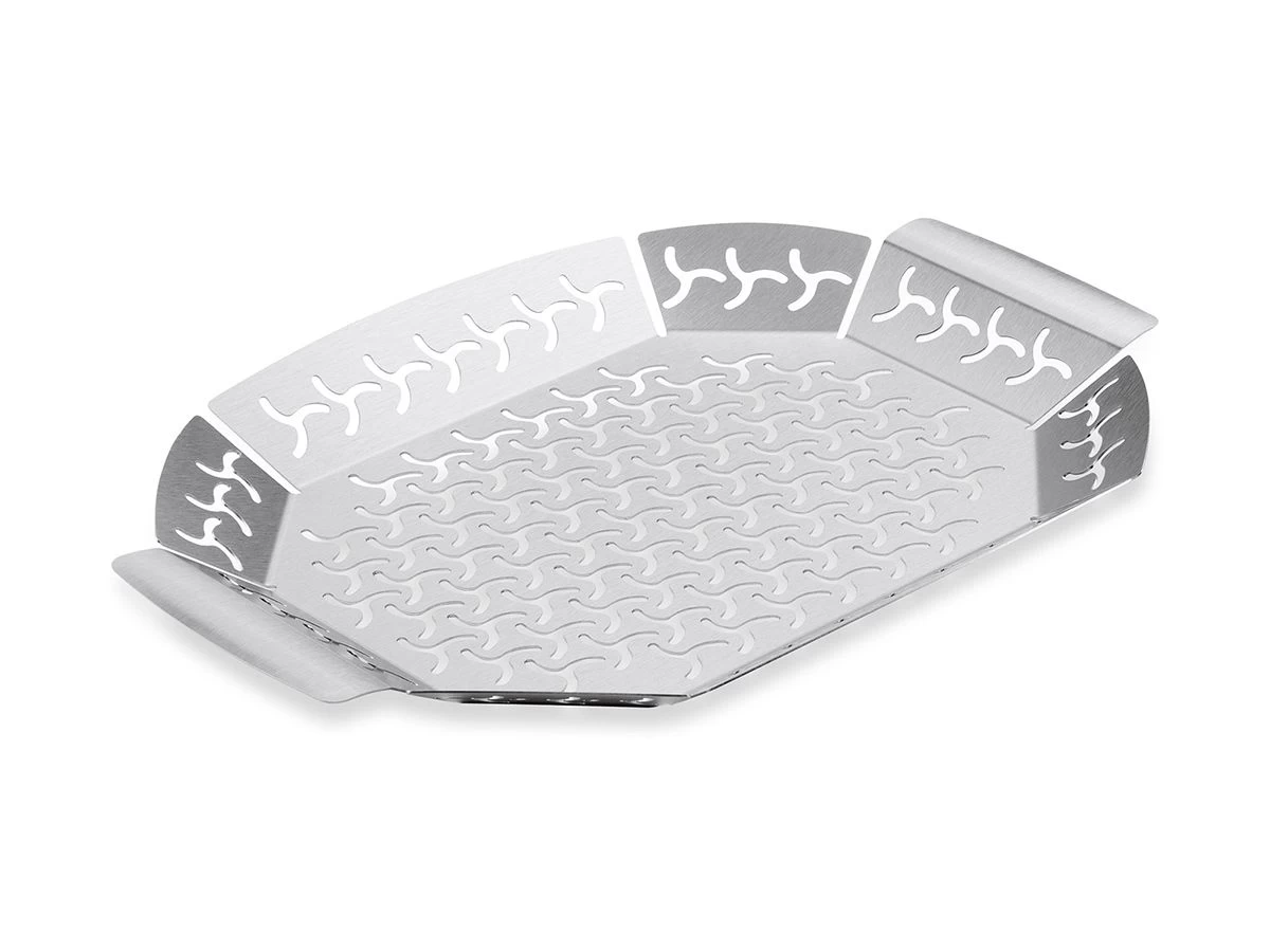 De groentekorf is gemaakt van roestvrij staal, kan in de vaatwasser en is geschikt voor bijna alle barbecues.